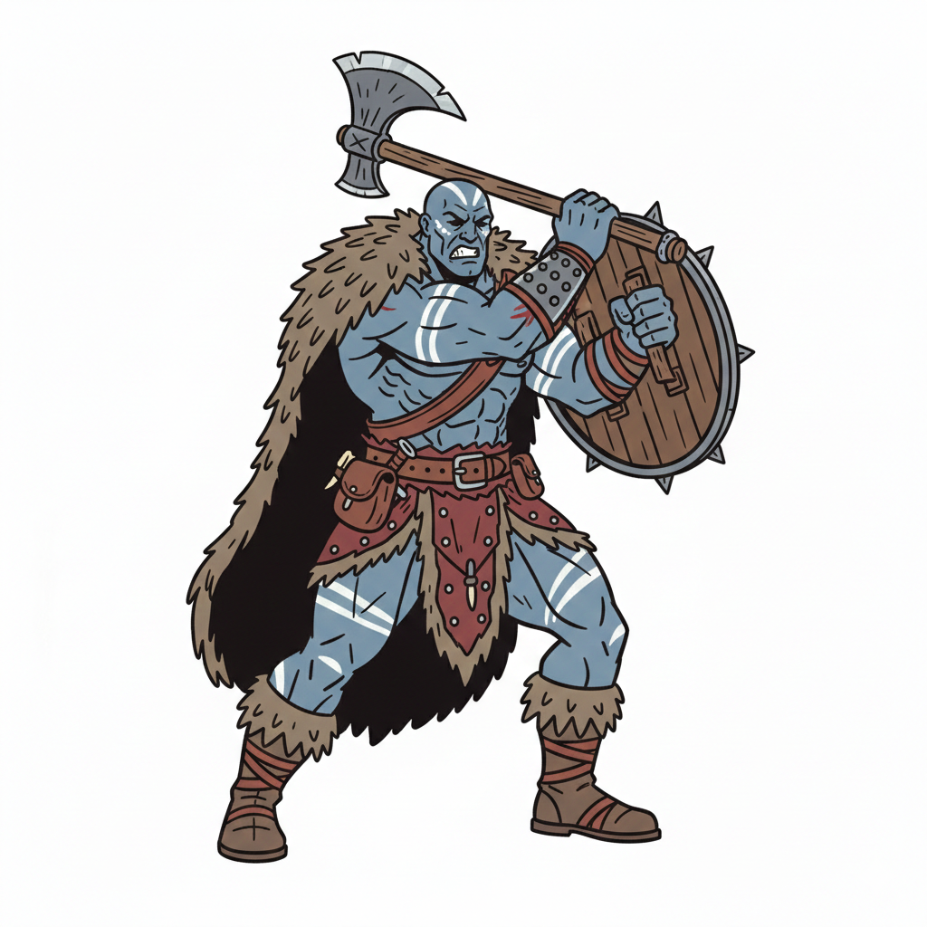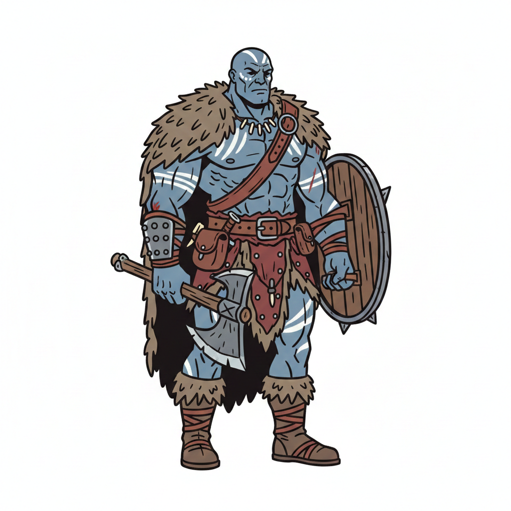 Create a full-body, print-ready image of a bald Goliath barbarian: